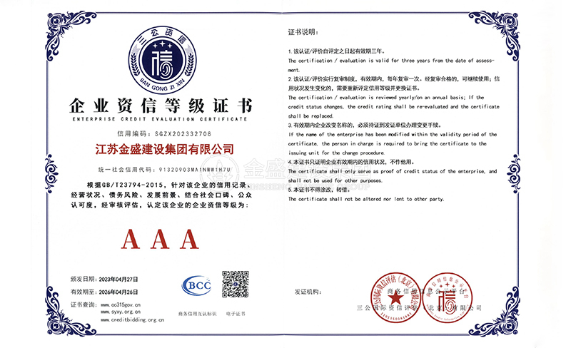 • 3A級(jí)資信等級(jí)證書